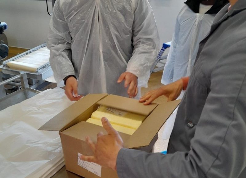 Nos équipes de la Biscuiterie sont allés à la rencontre des fournisseurs de beurre et farine … l’occasion de mieux connaître leur métier et valoriser les produits qu’ils préparent chaque jour. Ils ont eu le plaisir de leur remettre des biscuits fabriqués dans notre atelier grâce à leurs produits.
