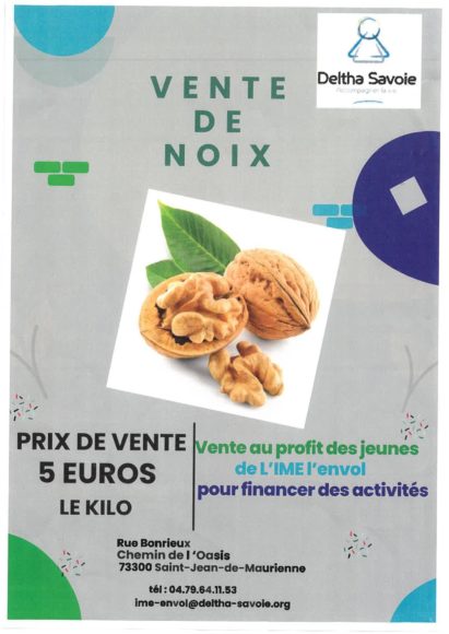 Deltha Savoie organise une vente de noix au profit des jeunes de l’IME l’Envol à Saint-Jean-de-Maurienne (commandes possibles jusqu’au 15 décembre 2024)